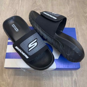 Skecher.s Go Recover Adjust Premium Black Grey Slides