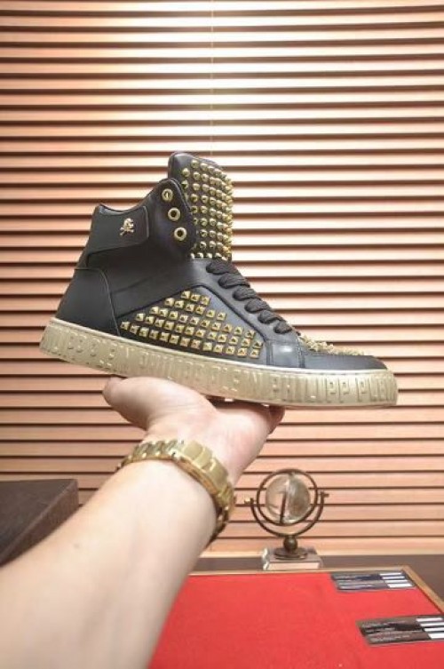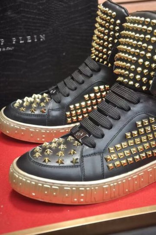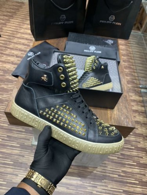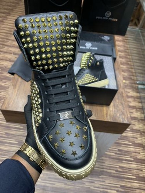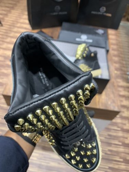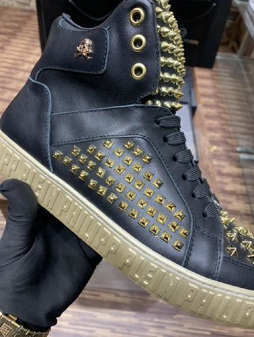 PHILIPP PLEIN STUD NAPPA BLACK GOLD MID TOP PREMIUM SNEAKER