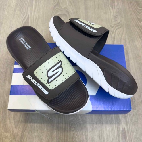 Skecher.s Go Recover Adjust Premium Brown White Slides